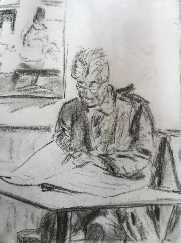 I’m always fascinated how many people go out as couples then end up, one or both using their phones. What follows are a few sketches observing ‘café life’, catching the poses, moments of concentration and sometimes humour of those around me.