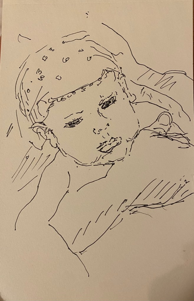 This was an Austrian family with quite a young baby, the father cradling him as the child seemed quite interested in the movement of the pen on the paper. Not often will a small baby who had been crying, be such a good model, thank you to the father especially for holding him whilst I drew.